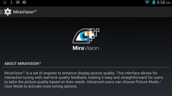 В этом устройстве есть достаточно продвинутая система из профилей и настроек, предоставляющая возможность скорректировать цветовой баланс. Называется она MiraVision.