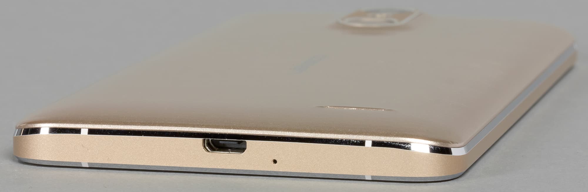 На верхнем торце установлен выход 3,5 мм на наушники, в нижний врезан разъем Micro-USB, поддерживающий подключение внешних устройств в режиме USB OTG.