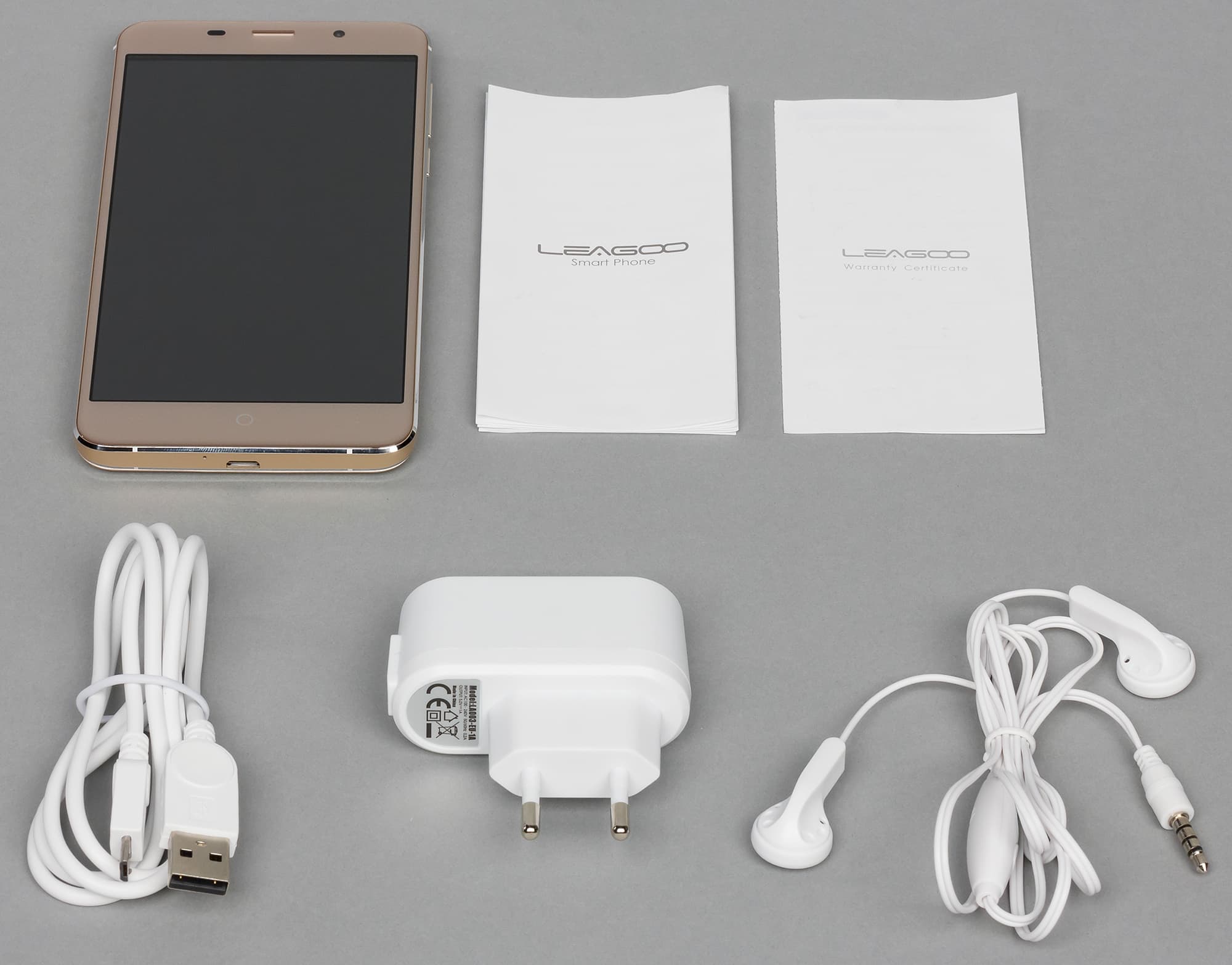 Комплект состоит из соединительного кабеля, не слишком мощного сетевого адаптера с выходным током и напряжением 5 В 1 А и совершенно никчемных наушников без накладок, которые даже в ушах не держатся.