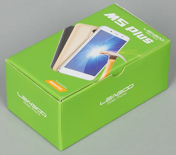 Упаковка у Leagoo M5 Plus простенькая, картонка просто собрана по сгибам без склейки, оформление дешевое и неинтересное.