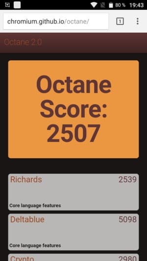 | Google Octane 2 (больше — лучше) | 2507 | 2409 | 3146 | 4542 | 3994 |