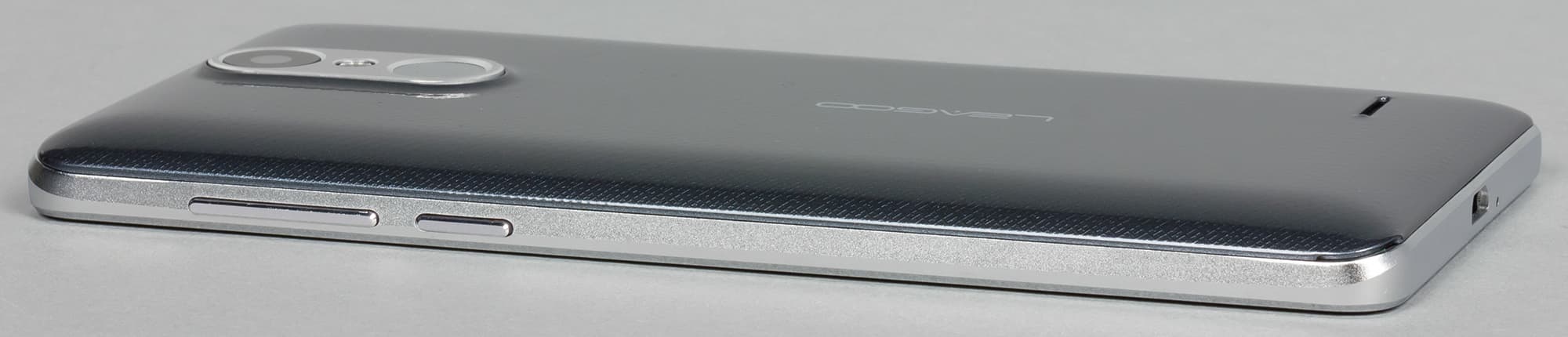 Во-вторых, вся тыльная поверхность Leagoo M5 глянцевая, а значит, скользкая и маркая. Отпечатки на ней появляются быстро и остаются хорошо заметны под определенным углом. Стекло, естественно, тоже со временем покрывается отпечатками, и единственное место, которое остается немарким, это боковой ободок.