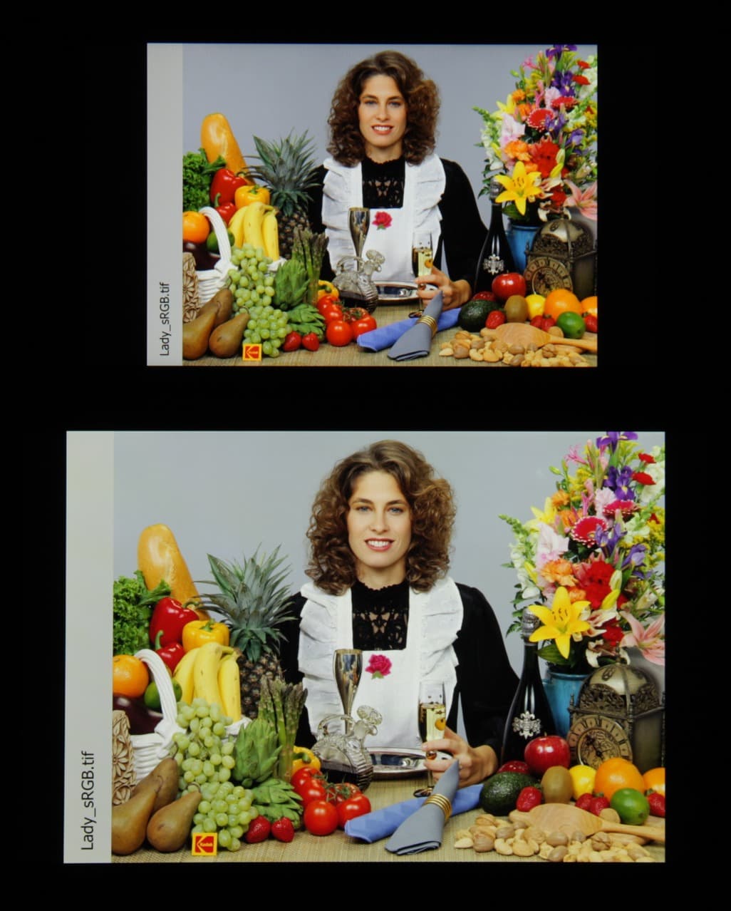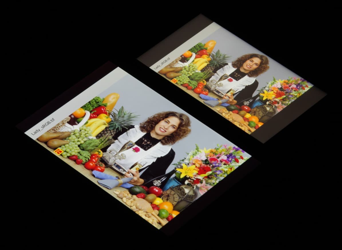 В итоге цвета имеют естественную насыщенность. Баланс оттенков на шкале серого хороший, так как цветовая температура несильно выше стандартных 6500 К, а отклонение от спектра абсолютно черного тела (ΔE) меньше 10, что для потребительского устройства считается приемлемым показателем. При этом цветовая температура и ΔE мало изменяются от оттенка к оттенку — это положительно сказывается на визуальной оценке цветового баланса. (Самые темные области шкалы серого можно не учитывать, так как там баланс цветов не имеет большого значения, да и погрешность измерений цветовых характеристик на низкой яркости большая.)