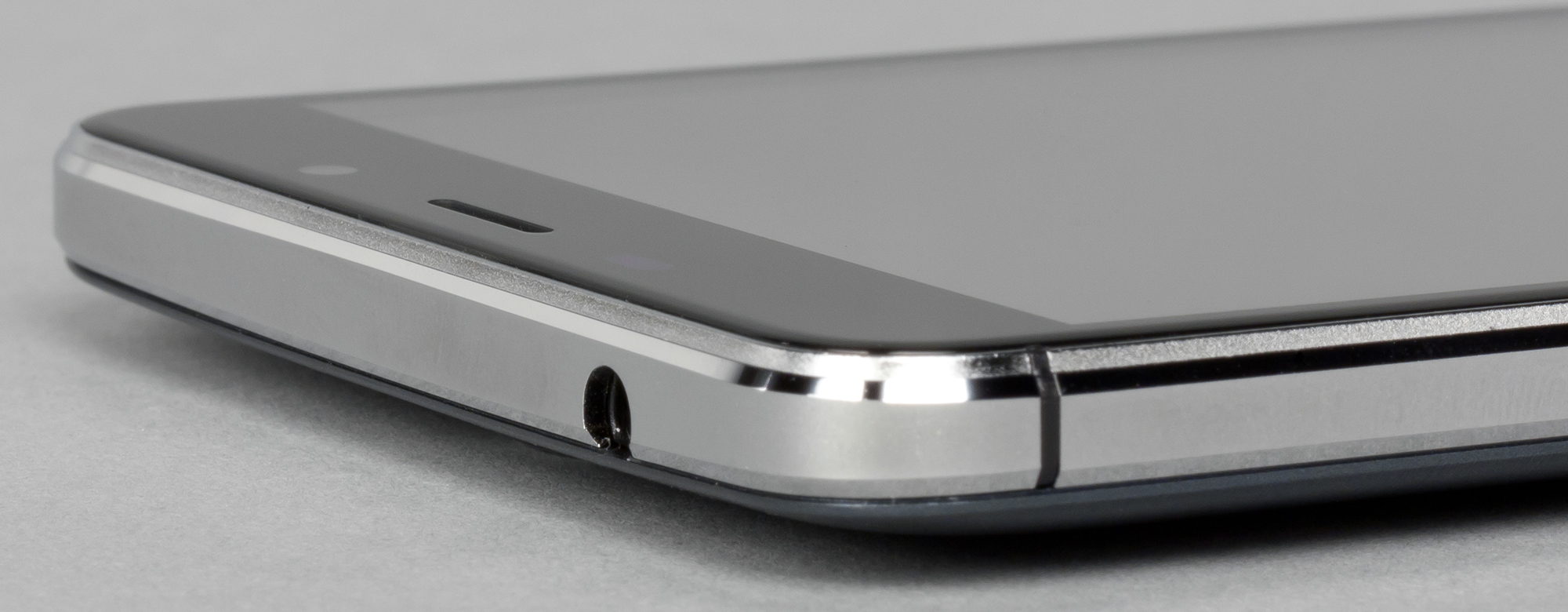 Основной динамик выведен сюда же, на тыльную сторону, поэтому звук лежащего смартфона приглушается поверхностью стола. Это самый неудачный и в целом устаревший уже вариант расположения динамика, сейчас производители стараются выводить звук в нижний торец.