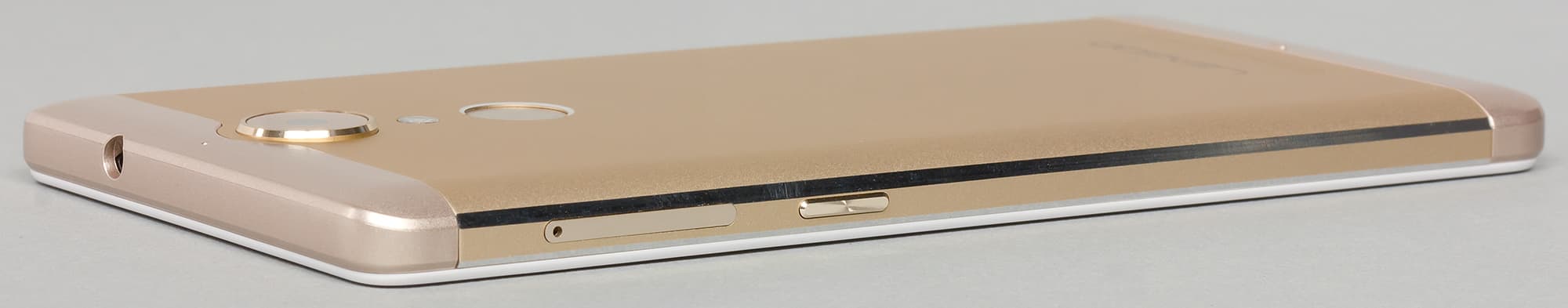 Leagoo T1 имеет тот вариант металлического корпуса, где только средняя часть на самом деле металлическая, а торцы выполнены из пластика, выкрашенного под цвет металла. Это не вставки в металле, а именно целые торцевые части, и все отверстия разъемов проделаны не в металле, а в пластмассе.
