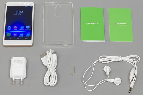 В комплекте стандартно обнаружились сетевой адаптер (1,5 А, 5 В), соединительный кабель, простенькие проводные наушники, ключик для извлечения карт и гибкий прозрачный силиконовый чехол. Все это не занимает и половины объема коробки, остальное пространство пустует.