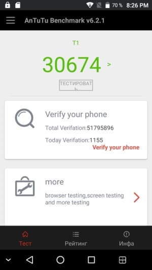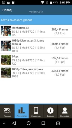 Свежая MediaTek MT6737 приходит на смену популярной SoC MediaTek MT6735 — платформе, ориентированной на ультрабюджетный класс устройств. Ясно, что ждать от такой платформы высоких показателей производительности не стоит, и все тесты это подтверждают. Возможности данной SoC очень скромны, это даже не средний уровень, а низкий. Игры идут лишь на минимальных настройках, причем многие из них, например требовательные до ресурсов Dead Trigger 2 или Modern Combat 5, заметно притормаживают. В общем, перед нами не мультимедийное решение, а, скорее, электронный органайзер с функциями телефона. Для этих целей производительности хватает, но запаса на будущее тут, конечно, нет.