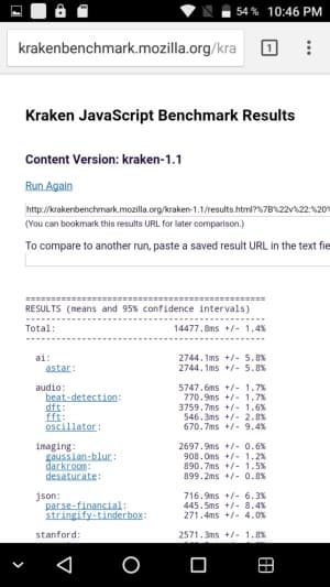 Что касается бенчмарков для оценки скорости движка javascript, то стоит всегда делать скидку на то, что в них результаты существенно зависят от браузера, в котором запускаются, так что сравнение может быть истинно корректным только на одинаковых ОС и браузерах, а такая возможность имеется при тестировании не всегда. В случае с ОС Android мы всегда стараемся использовать Google Chrome.