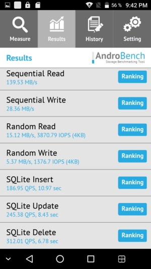 Результаты теста AndroBench на скорость работы с памятью: