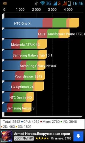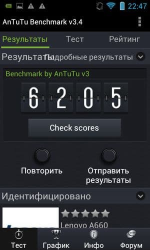 В игровом тесте Epic Citadel результаты у графической подсистемы Lenovo A660 скромные, но тестирование хотя бы прошло без отказов.