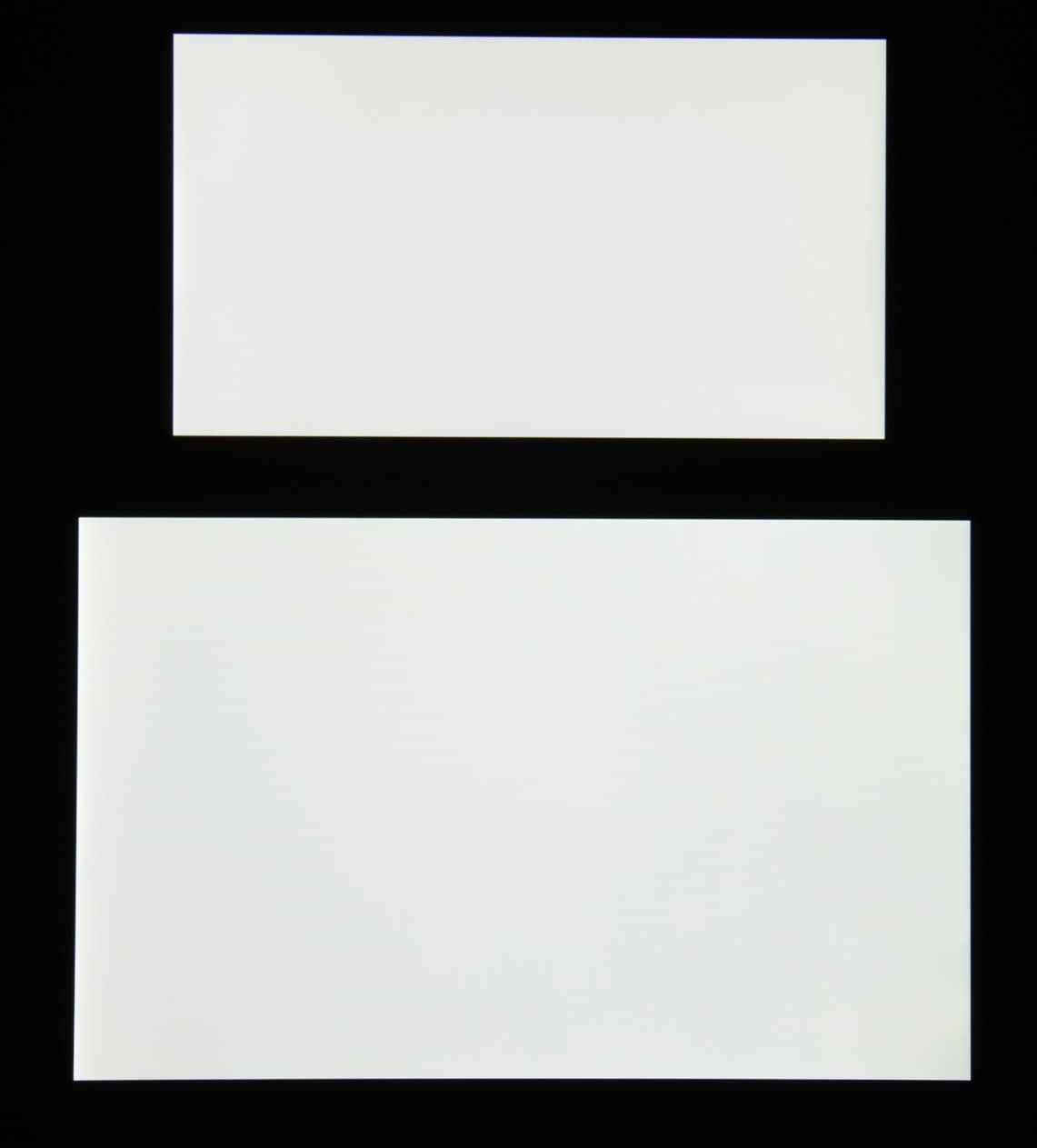Экран имеет хорошие углы обзора без значительного сдвига цветов даже при больших отклонениях взгляда от перпендикуляра к экрану и без инвертирования (кроме самых-самых темных при отклонении взгляда по одной диагонали) оттенков. Для сравнения приведем фотографии, на которых на экраны Lenovo A7000 и Nexus 7 выведены одинаковые изображения, при этом яркость экранов изначально установлена примерно на 200 кд/м² (по белому полю во весь экран), а цветовой баланс на фотоаппарате принудительно переключен на 6500 К. Перпендикулярно к экранам белое поле: