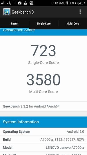 На текущий момент платформа MediaTek MT6752, пожалуй, является наиболее интересным решением для среднего уровня, поскольку смартфоны на ней оказываются дешевле, чем на конкурирующей Qualcomm Snapdragon 615, а в плане производительности значительно опережают ее. Производительности Lenovo A7000 еще вполне достаточно для выполнения любых без исключения задач, в том числе и достаточно требовательных 3D-игр.