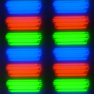 В данном смартфоне используется матрица типа IPS. Микрофотографии демонстрируют типичную для IPS структуру субпикселей: