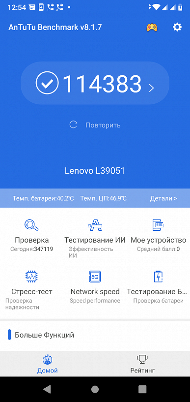 | AnTuTu (v8.x) (больше — лучше) | 114383 | 188419 | 182704 | 156290 | 174316 |