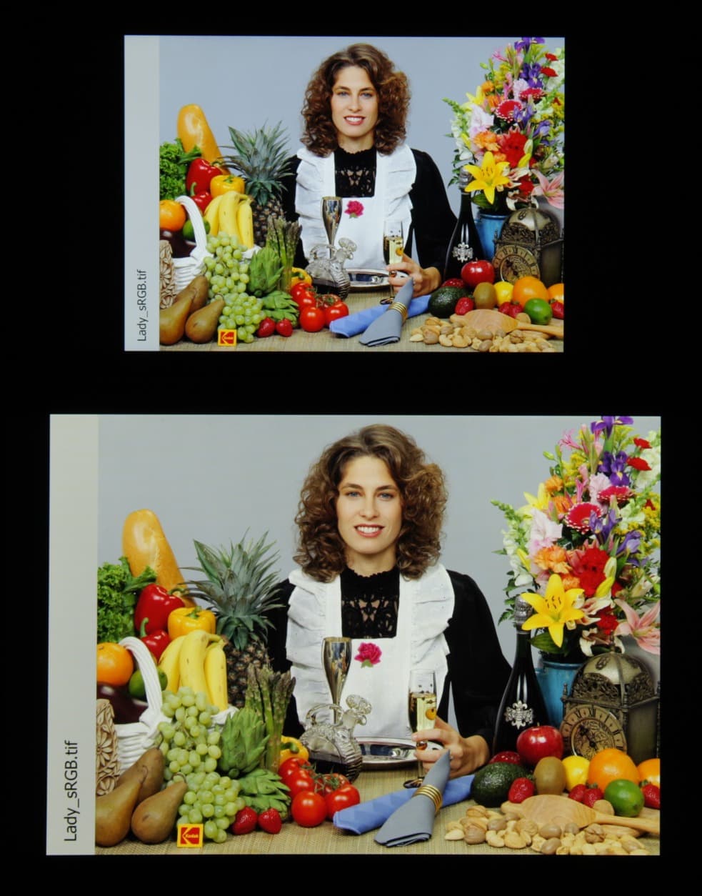 Равномерность яркости и цветового тона белого поля хорошая. И тестовая картинка: