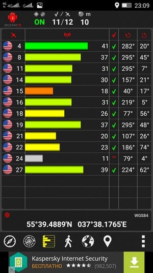 К навигационному модулю особых претензий нет, при холодном старте спутники находятся в течение первой минут, но поддерживается только система GPS. Датчик магнитного поля, необходимый для функционирования электронного компаса навигационных программ в аппарате установлен.