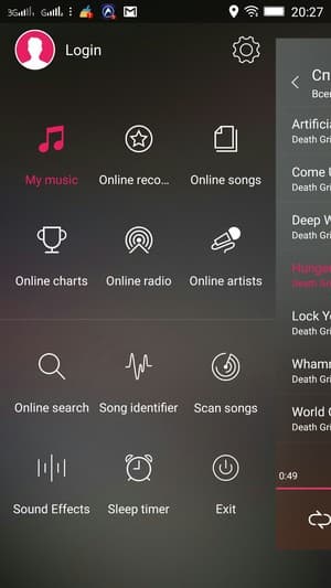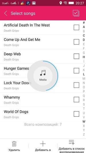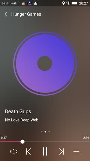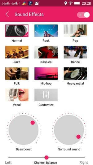 Для проигрывания музыкальных композиций в аппарате используется собственный аудиопроигрыватель. В программе имеется богатый выбор разнообразных возможностей, в том числе и для дополнительного программного улучшения звучания, есть эквалайзер с несколькими предустановленными значениями, можно добавить басов, но это возможно только при подключенных наушниках.
