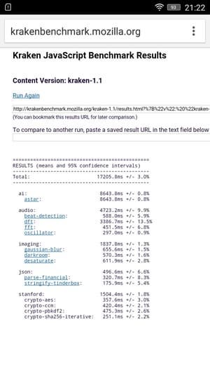 | Mozilla Kraken (мс, меньше — лучше) | 17206 | 16144 | 13341 | 10440 | 13089 |