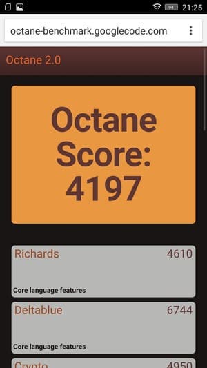 | Google Octane 2 (больше — лучше) | 4197 | 4038 | 2904 | 3664 | 2468 |