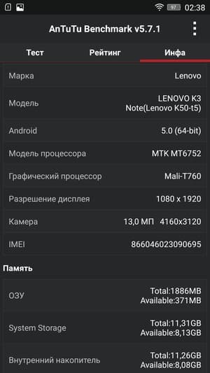 Основные характеристики Lenovo K3 Note (модель K50-t5)