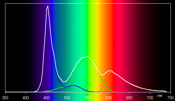 Спектры показывают, что светофильтры матрицы в умеренной степени подмешивают компоненты друг к другу: