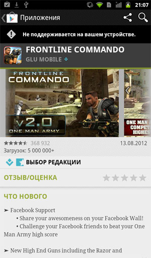 Игры, которые были видны в Play Store, но не запустились на прошивке Android 4.0.4: