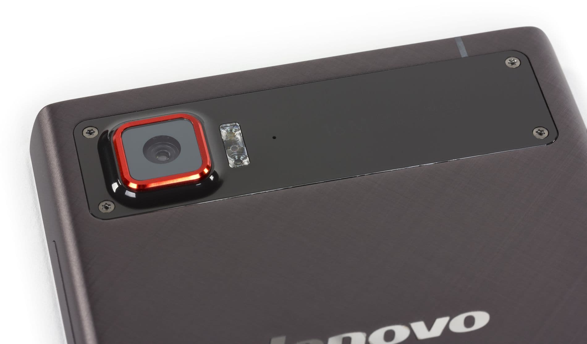 Модуль качественной камеры с технологией оптической стабилизации, встроенный в смартфон, оказался слишком толстым, поэтому он здесь слегка выпирает за пределы корпуса. Модуль вместе со сдвоенной светодиодной вспышкой реализованы в едином блоке, крепящемся в виде отдельной панели на четырех металлических винтах. Вспышка может функционировать как ярко светящий фонарик, соответствующее ПО предустановлено в смартфоне.