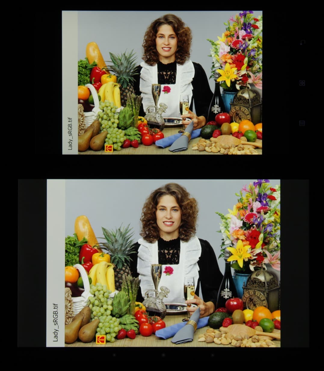 Видно, что цвета не сильно изменились у обоих экранов, и контраст сохранился на высоком уровне. И белое поле: