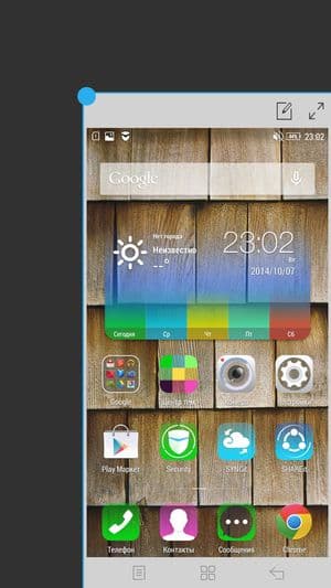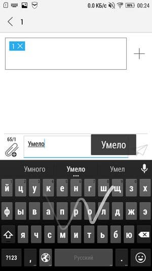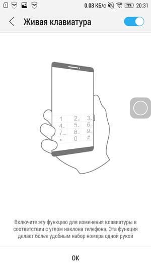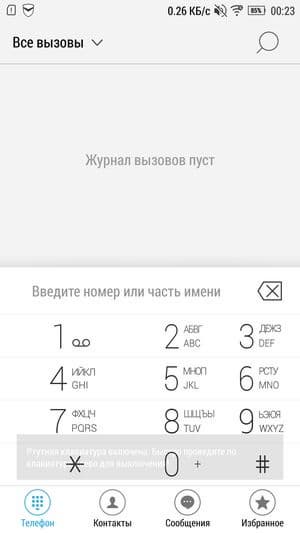Телефонное приложение поддерживает Smart Dial, то есть во время набора телефонного номера сразу осуществляется и поиск по первым буквам в контактах. Поддержка ввода безотрывным скольжением от буквы к букве (Swype) здесь тоже реализована. Виртуальную клавиатуру с помощью настроек можно уменьшить в размерах для удобства управления пальцами одной руки (здесь это называется «ртутная клавиатура», когда ряды с клавишами «перетекают» поближе к одному из краев при наклоне смарфона). Также можно уменьшить в размерах весь рабочий экран целиком — для текущих топовых планшетофонов все это вполне привычная и знакомая функциональность.