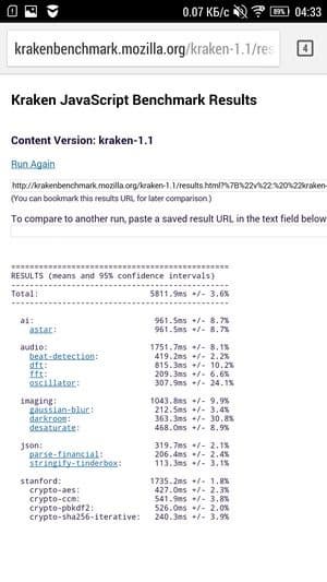 | Mozilla Kraken (мс, меньше — лучше) | 5812 | 10876 | 6193 | 6817 | 6893 |