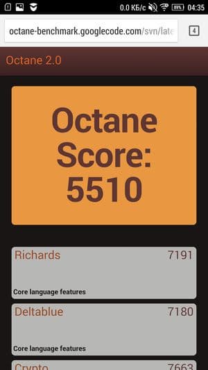 | Google Octane 2 (больше — лучше) | 5510 | 3701 | — | — | — |