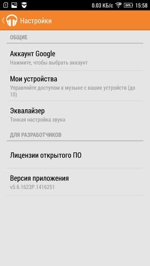 Для воспроизведения музыки здесь предусмотрен лишь штатный проигрыватель Google Music с минимальным количеством настроек в виде предустановленных значений эквалайзера.