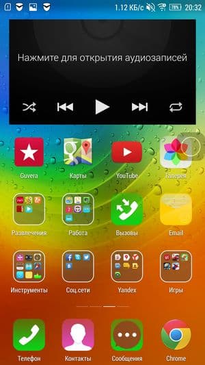 Предустановленных программ чрезмерно много, бо́льшая часть из них рассортирована по тематическим папкам. Среди них есть и полезные инструменты для работы, такие как файловый менеджер или пакет для работы с офисными документами. В смартфоне можно найти полный набор мобильных приложений Яндекса, которые бесплатны и в большинстве своем дублируют фирменные приложения Google, так что набивать ими память смартфона без особой нужды, в общем-то, не имело большого смысла. Здесь же можно найти папку с несколькими предустановленными играми (Asphalt 8, Green Farm 3, Real Football 2014) и, конечно же, полный набор клиентов самых популярных соцсетей.