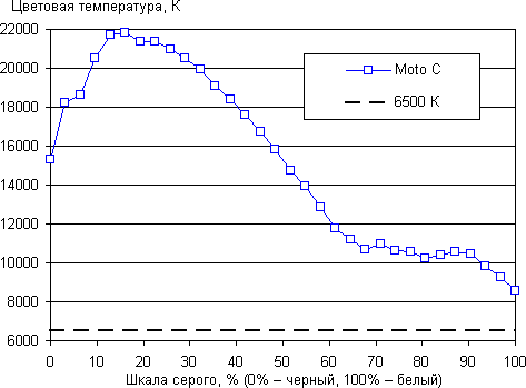 Данный прием позволяет увеличить яркость экрана при тех же затратах энергии на подсветку, но цвета теряют в насыщенности. Баланса оттенков на шкале серого как такового нет вообще — цветовая температура выше стандартных 6500 К и очень сильно меняется от оттенка к оттенку: