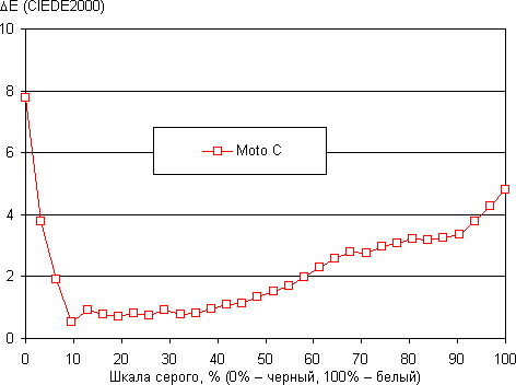 Отметим, что равномерность яркости и цветового тона у Moto C хорошая.
