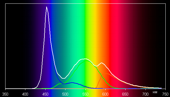 Видимо, светофильтры матрицы значительно подмешивают компоненты друг к другу. Спектры это подтверждают: