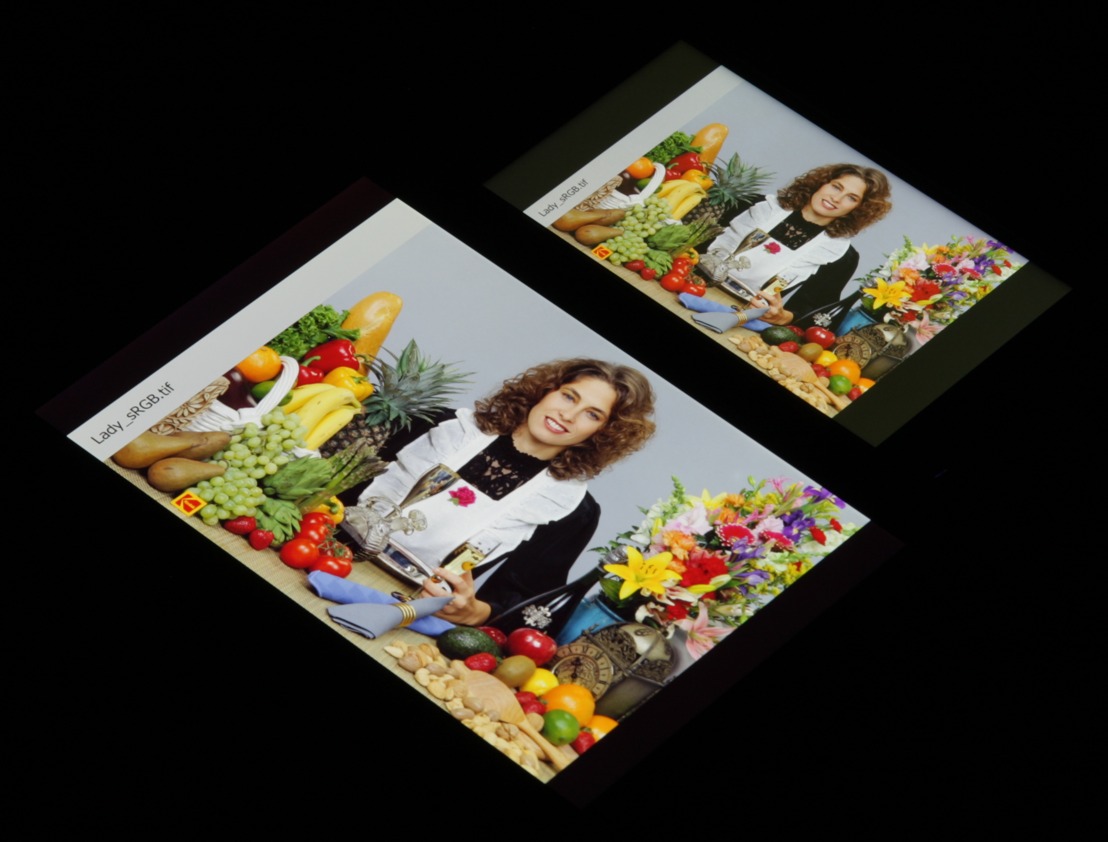 В итоге визуально цвета на этом экране не отличаются от естественных. Баланс оттенков на шкале серого хороший, так как цветовая температура не сильно выше стандартных 6500 К, а отклонение от спектра абсолютно черного тела (ΔE) ниже 10, что для потребительского устройства считается приемлемым показателем. При этом цветовая температура и ΔE несильно изменяются от оттенка к оттенку — это положительно сказывается на визуальной оценке цветового баланса. (Самые темные области шкалы серого можно не учитывать, так как там баланс цветов не имеет большого значения, да и погрешность измерений цветовых характеристик на низкой яркости большая.)