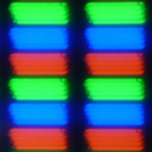 В данном смартфоне используется матрица типа IPS. Микрофотографии демонстрируют типичную для IPS структуру субпикселей: