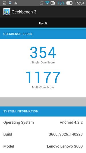 Чтобы получить представление о производительности платформы тестируемого смартфона, был проведен стандартный набор тестов. По результатам полученных в ходе тестирования данных, система Lenovo S660 продемонстрировала вполне ожидаемые от данной платформы MediaTek не слишком высокие показатели производительности.