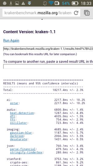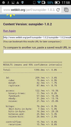 Что касается бенчмарков для оценки скорости движка javascript, то стоит всегда делать скидку на то, что в них результаты существенно зависят от браузера, в котором запускаются, так что сравнение может быть истинно корректным только на одинаковых ОС и браузерах, а такая возможность имеется при тестировании не всегда. В случае с ОС Android мы всегда стараемся использовать Google Chrome.