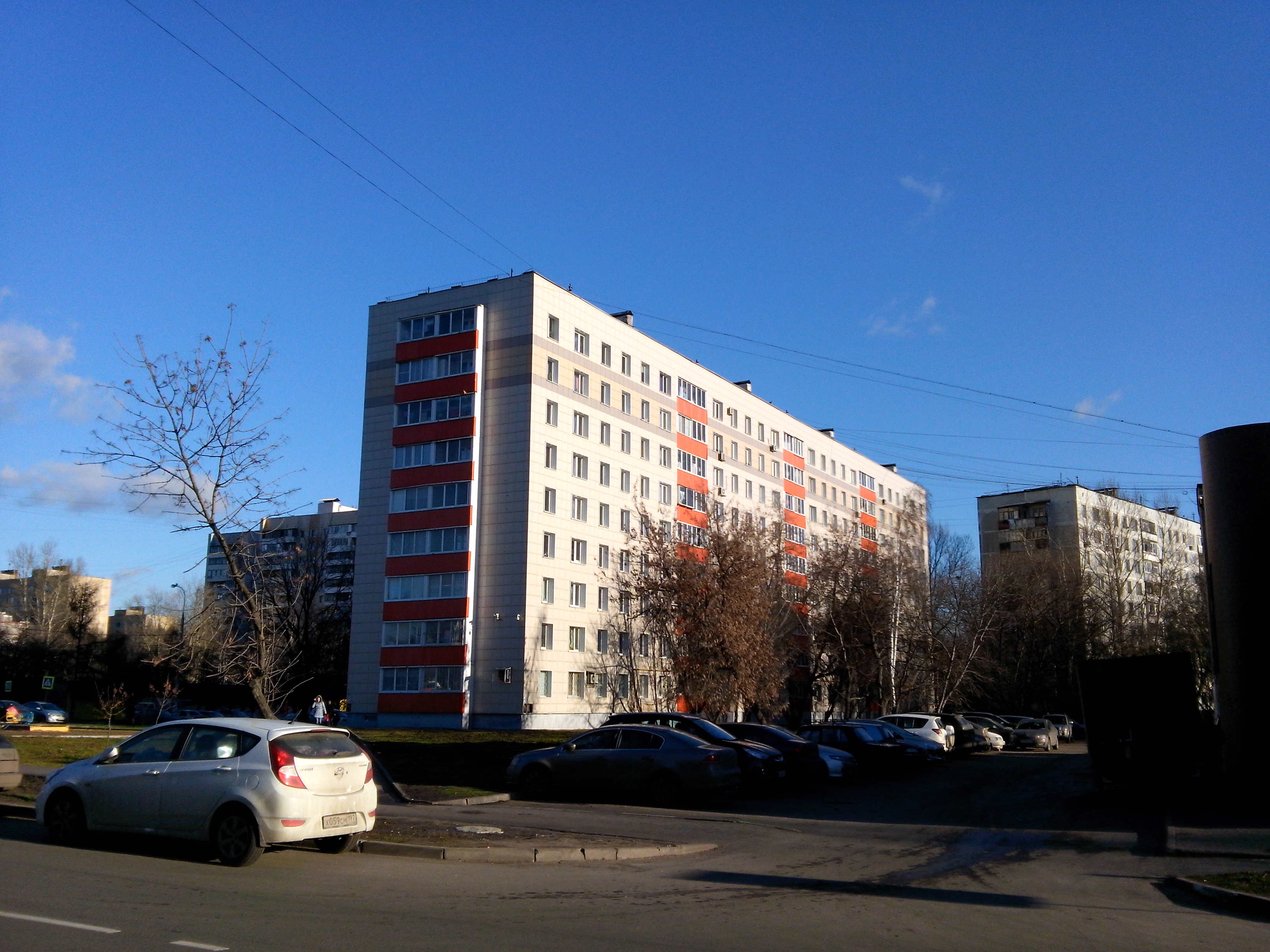 При очень короткой выдержке (1/1122 секунды) результат еще лучше: дом отработан хорошо, следы шарпинга почти незаметны, номер ближайшей машины отлично различим.