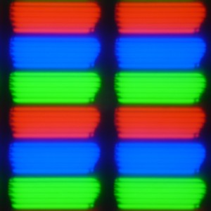 В данном смартфоне установлена матрица типа IPS. Микрофотография демонстрирует типичную для IPS структуру субпикселей: