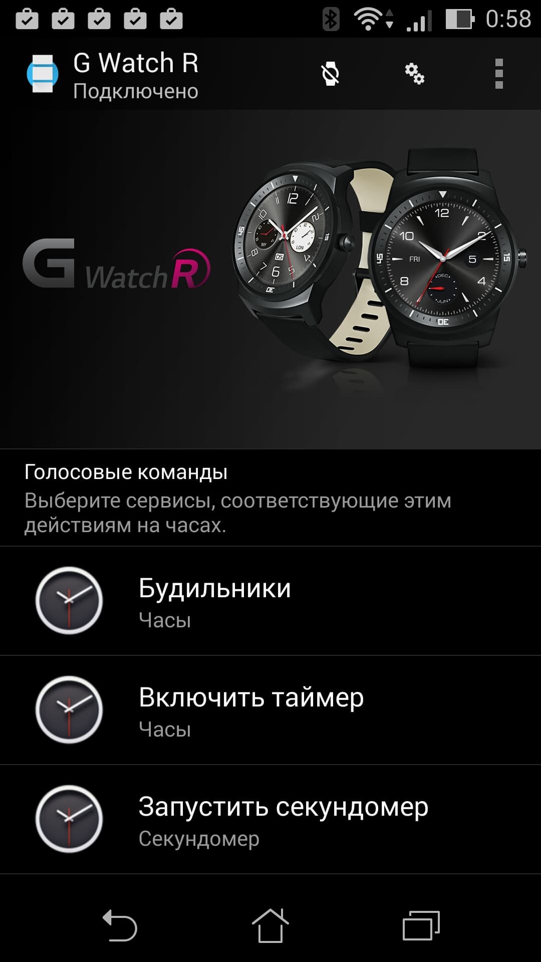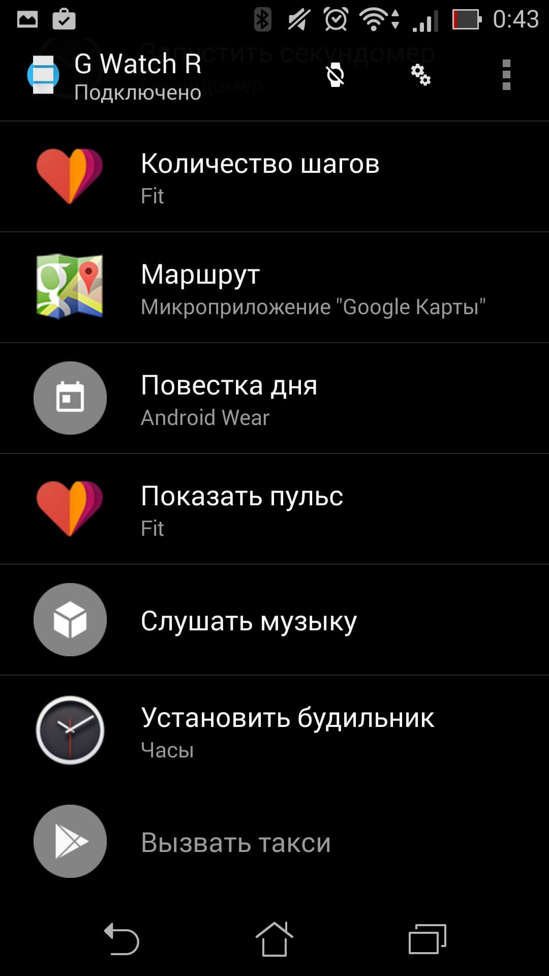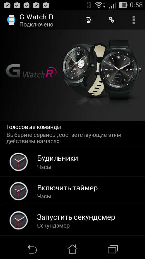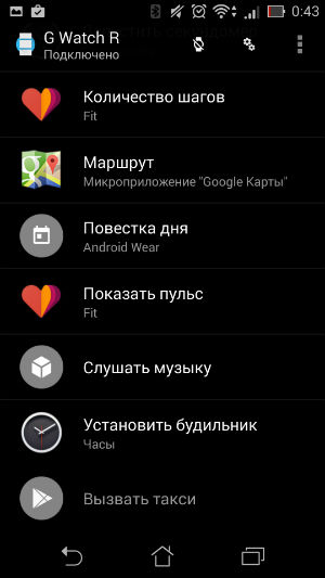 Возвращаясь к взаимодействию LG G Watch R и смартфона, скажем, что здесь никаких изменений по сравнению с тем, что мы видели, тестируя еще LG G Watch, нет. За четыре месяца приложение никак не изменилось (по крайней мере, внешних признаков этого нет).