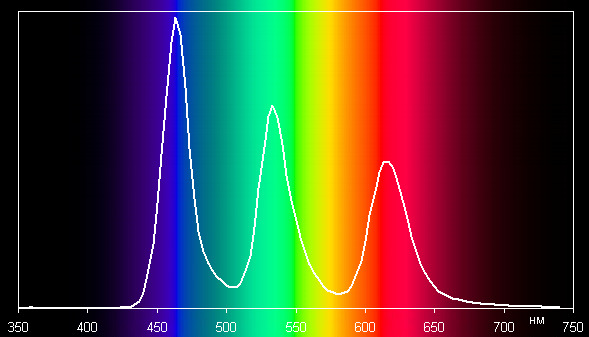 Аналогичное «строение» экрана мы наблюдали, например, в случае смартфона LG G Flex. Спектры типичны для OLED — области первичных цветов хорошо разделены и имеют вид относительно узких пиков: