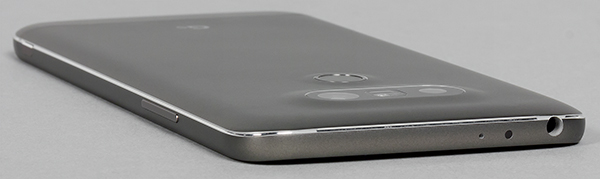 Остальные кнопки на корпусе также расположены необычно: раньше у LG громкость и питание были объединены на тыльной стороне в едином блоке, а теперь там можно найти только одну круглую кнопку питания. Громкость же переехала на левую боковую грань, и все это поначалу довольно сильно сбивает с толку. Боковая клавиша достаточно крупная и хорошо нащупывается вслепую.
