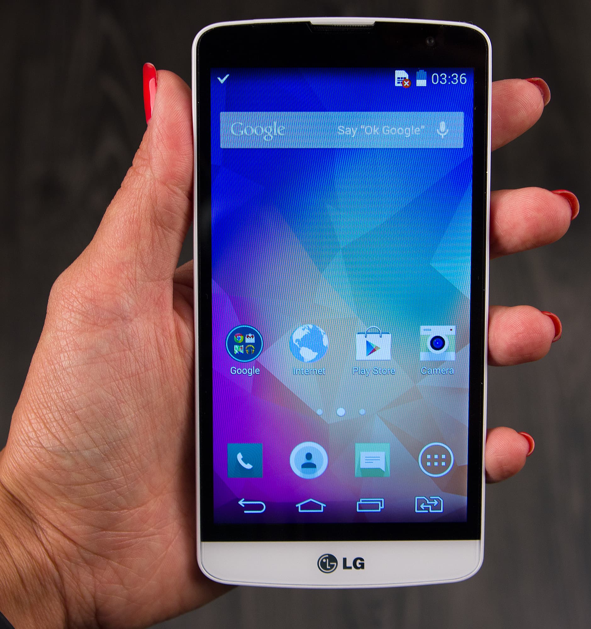 Основной динамик у LG L Bello лишь один, он издает достаточно громкий и звонкий звук, чистый во всем спектре, но практически лишенный низких частот. Решетка для выхода звука здесь врезана в заднюю стенку, так что звук значительно приглушается, когда аппарат лежит на столе. В разговорном динамике голос знакомого собеседника, тембр и интонация остаются узнаваемыми, разговор вполне комфортен.