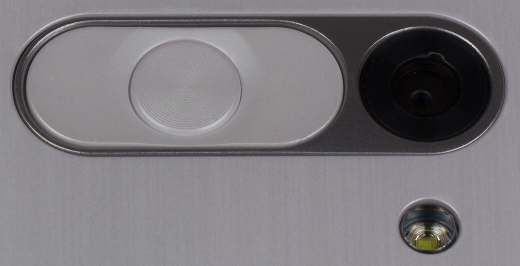 Модуль основной тыловой камеры здесь выполнен единым блоком вместе с клавишами и обрамлен металлизированным ободком, что выглядит достаточно симпатично, у младшей модели эти элементы разделены между собой и просто врезаны в пластмассу крышки. Светодиодная вспышка имеет одну секцию и способна с помощью предустановленной программы выполнять роль фонарика.