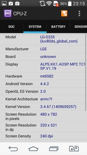 Аппаратная платформа LG L Bello строится на базе однокристальной системы (SoC) MediaTek MT6582. Центральный процессор здесь имеет 4 ядра Cortex-A7, работающих на частоте 1,3 ГГц. Обработкой графики занимается далеко не самый мощный видеопроцессор Mali-400MP. Оперативной памяти в устройстве предусмотрен 1 ГБ. Со встроенной памятью у смартфона совсем негусто — из номинально 8 ГБ всего чуть более 4 ГБ свободного места остается на нужды самого пользователя. Правда, для расширения встроенной памяти в смартфон можно установить карту microSD. А вот режим подключения внешних устройств к порту USB (USB Host, USB OTG) аппарат не поддерживает — считать информацию с подключенного к нему флэш-накопителя не получится.