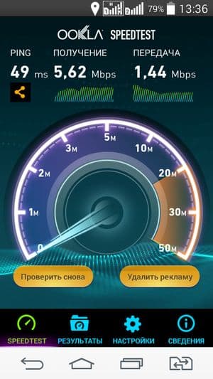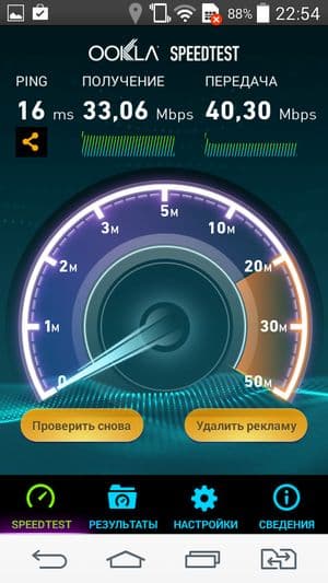 Смартфон стандартно работает в современных сетях 2G GSM и 3G WCDMA; поддержки сетей четвертого поколения (LTE) здесь нет. Скорость передачи данных теоретически ограничивается режимом HSPA+ до 21 Мбит/с, так указано в официальных спецификациях. Сами мы при тестировании наших проверочных LG L Fino и L Bello значка H+ в системной строке так и не увидели. Что касается сети Wi-Fi, то в домашних условиях с роутером Asus RT-N16 в качестве точки доступа герой обзора продемонстрировал скорость подключения в 33 Мбит/с.
