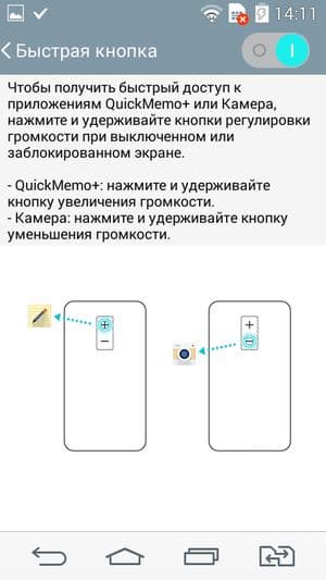 Назначение аппаратных клавиш осталось прежним: центральная круглая кнопка отрабатывает включение и блокировку смартфона, а две других, сверху и снизу, отвечают за регулирование громкости. Расширенные возможности блока аппаратных кнопок обеспечивают дополнительную функциональность в управлении: долгое удержание верхней кнопки запускает приложение Qmemo, нижней — вызывает камеру из спящего режима, а центральной кнопки — активирует съемку фото или видео. Ни одна из кнопок не выпирает за пределы корпуса, это оберегает их от непредумышленных нажатий.